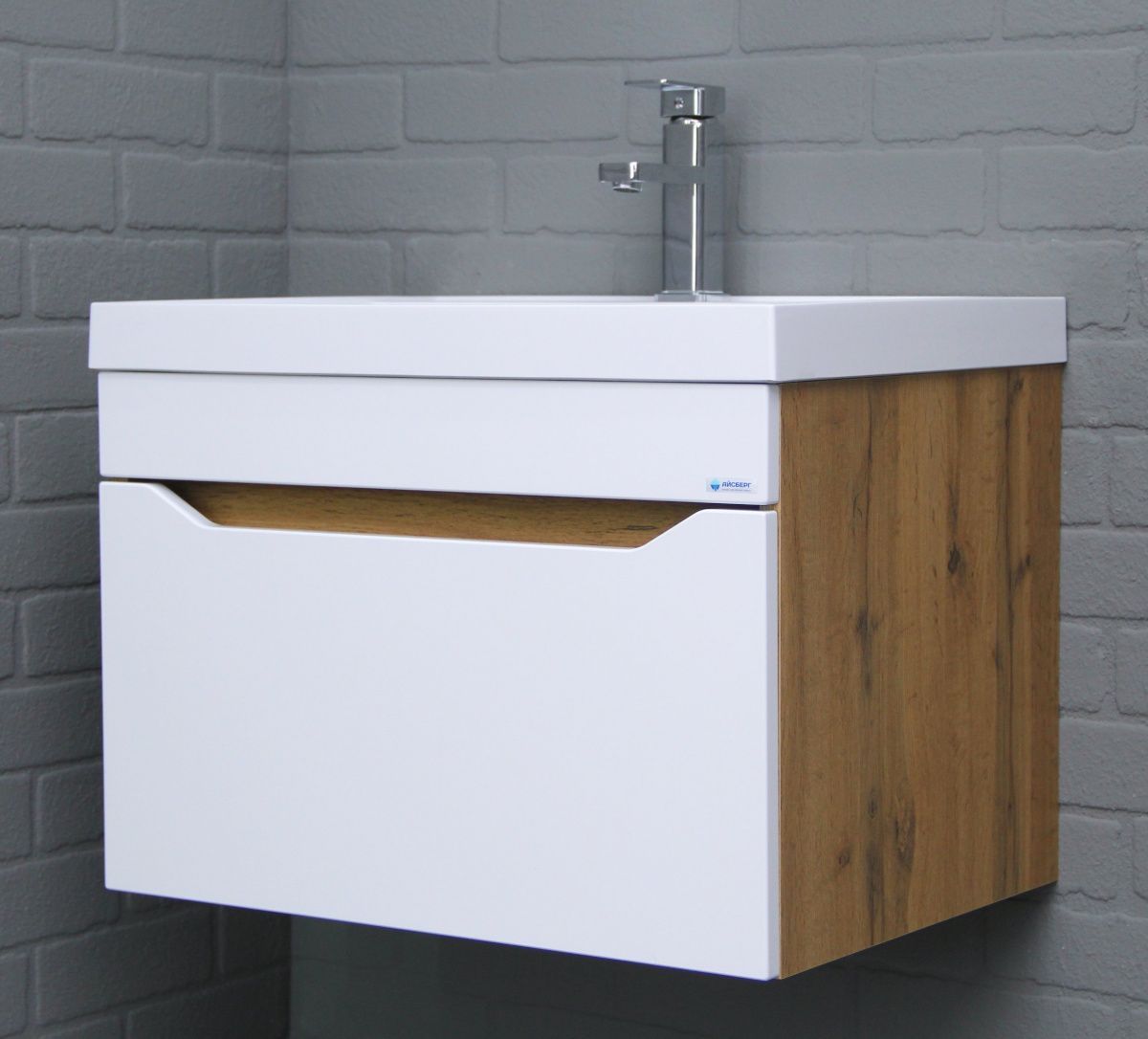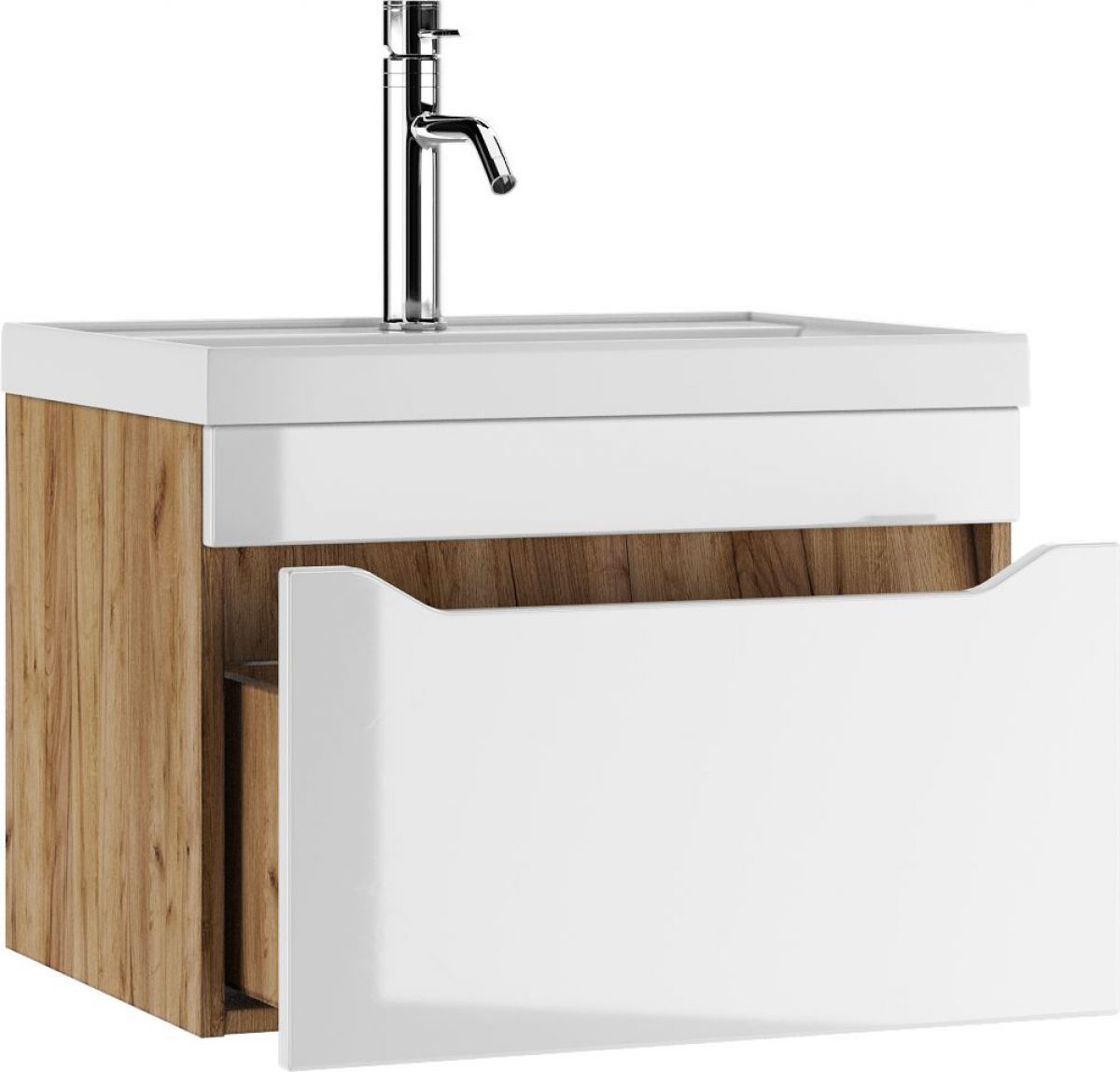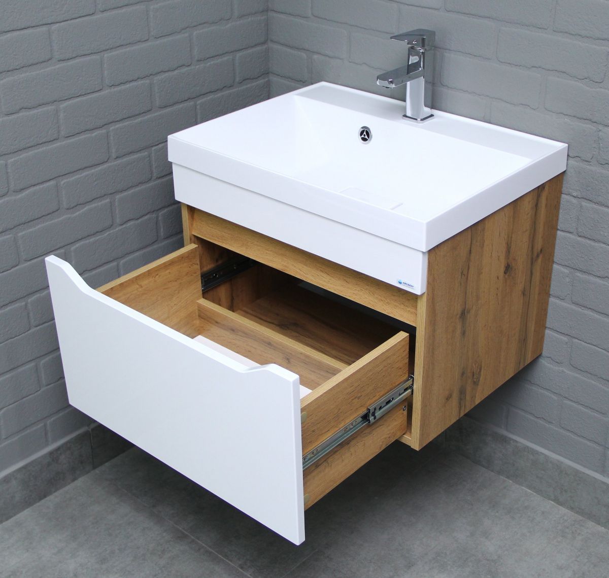 Тумба подвесная под умывальник "Bazis 60" Ева с одним ящиком В1 Дуб Вотан Айсберг (DA5906T)