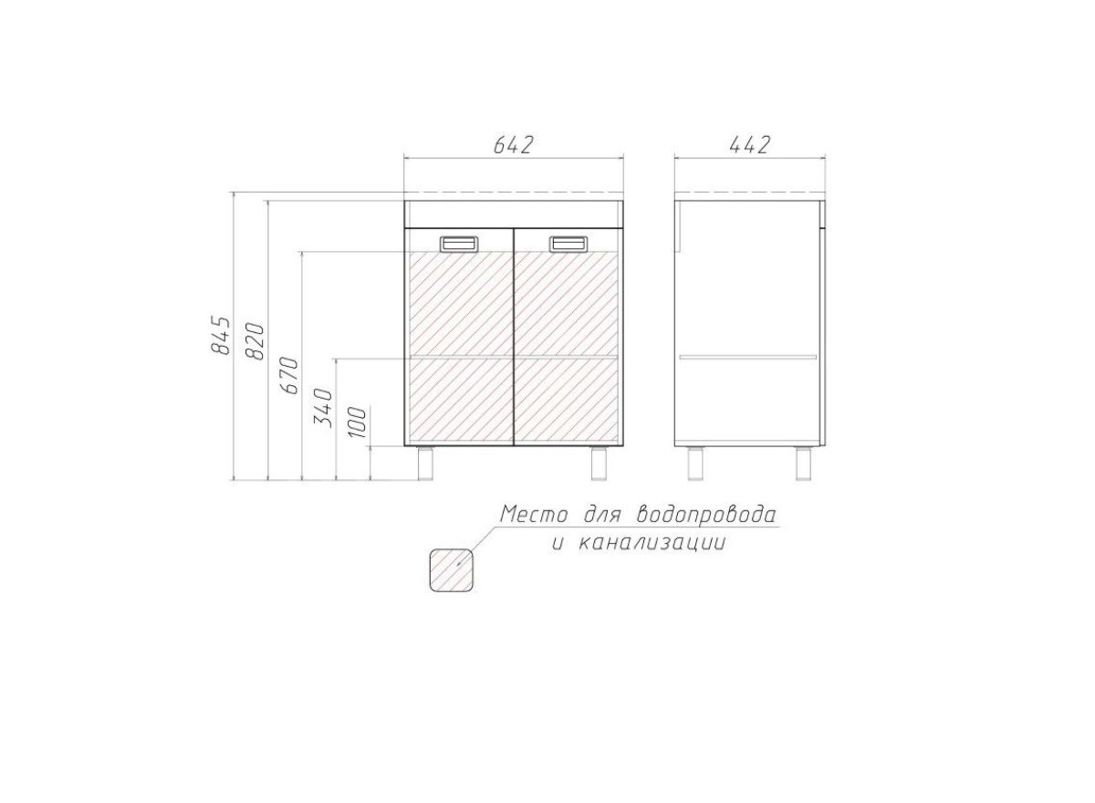 Тумба под умывальник Elen 65 Cube без ящика Домино